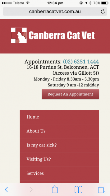 Please continue to call us on 6251 1444 if your cat is ill and needs to be seen on the same day or if you are not sure how urgent your cat’s problem is. Cats are very good at hiding how sick they are so if you have any doubts please discuss it with us on the phone.